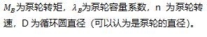 先不考虑涡轮导轮,单独考虑作为液力变矩器输入的泵轮,泵轮的输入特性,也既泵轮能够被加诸的负载公式为: