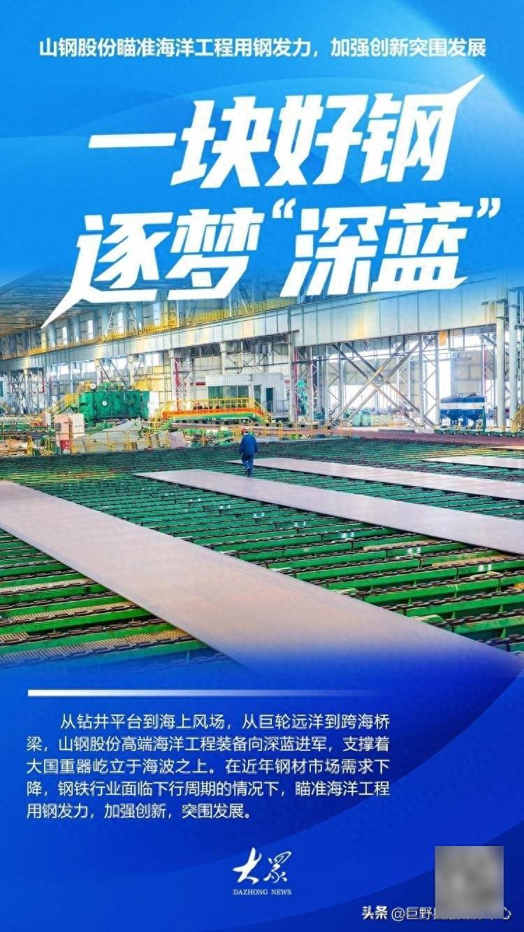 从钻井平台到海上风场,从巨轮远洋到跨海桥梁,山钢股份高端海洋工程装备向深蓝进军,支撑着大国重器屹立于海波之上。在近年钢材市场需求下降,钢铁行业面临下行周期的情况下,瞄准海洋工程用钢发力,加强创新,突围发展。