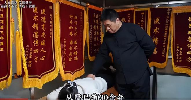 这家诊所门头挂着“正骨世家”“御医后代”的招牌,高医生已经49岁,在当地小有名气,墙上挂满锦旗,自称“高氏正骨第十九代传人”。而高飞林本人则是9岁就开始跟着祖父学习正骨手艺,17岁就读湖南中医学院,擅长腰间病变,骨质增生等疑难杂症。