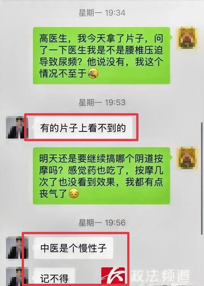 长沙女子腰部不适去正骨被男医生连摸3天私密处聊天记录曝光