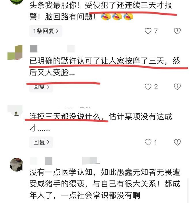 自己是个成年人了,竟然默许对方按摩了三天才后知后觉,刘女士自己也有责任,对咸猪手和猥亵没有自卫意识。